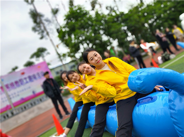 比賽活動包含了豐富多彩的項(xiàng)目,有考驗(yàn)團(tuán)隊(duì)合作的“瘋狂毛毛蟲”和“無敵風(fēng)火輪”,還有難度和樂趣并存的“趣味鉆圈接力”,以及考驗(yàn)?zāi)鹾图夹g(shù)的“集體過河”等等。每位選手都興致勃勃、斗志昂揚(yáng)地參加了比賽,觀眾們也樂此不疲地為選手鼓勁加油。