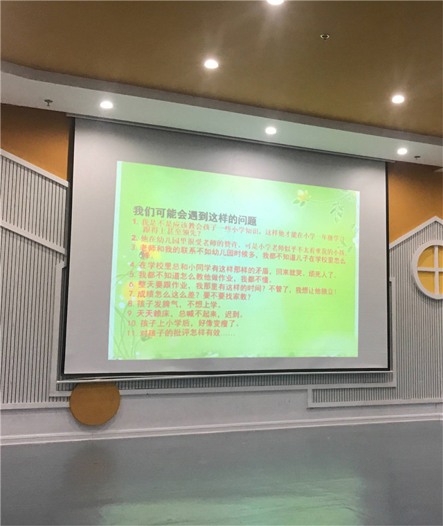 課堂上,陳老師通過PPT演示與案例分析相結合的方式,引導家長從心理、生理及學習上幫助孩子走好人生第一步。本次講座近兩個小時,內(nèi)容豐富精彩,臺下的家長認真傾聽并積極做好記錄,活動取得了較好的效果。