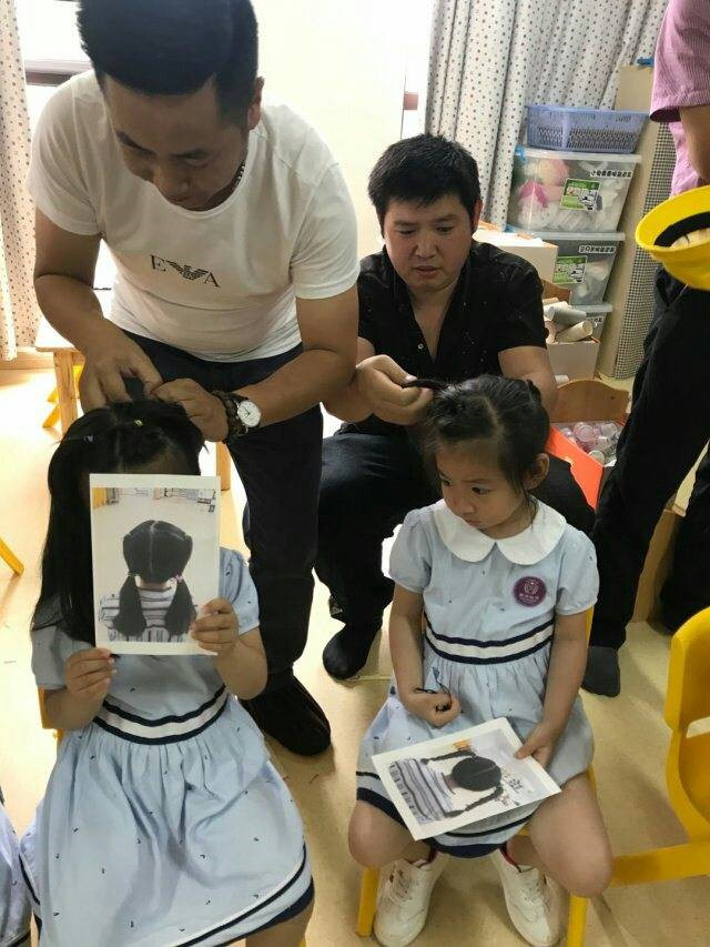 女生們都在忙著扎頭發(fā),男生們自然也不能老爸“閑著”~