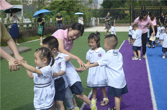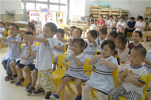 迎接著清晨的第一縷陽光,寶貝們洋溢著燦爛的笑容,大手牽著小手一起走進(jìn)溫馨的幼兒園。隨著動(dòng)感的音樂,家長開放日活動(dòng)拉開序幕。家長分別從晨間活動(dòng)、早操活動(dòng)、集中教學(xué)活動(dòng)、游戲活動(dòng)等各個(gè)環(huán)節(jié)了解小寶貝們在園的學(xué)習(xí)和生活情況。