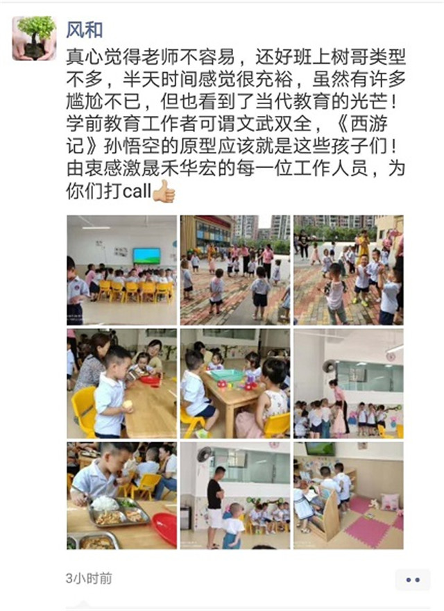 六月,蔚藍(lán)的天空,夏天披著一身的綠葉兒在暖風(fēng)里蹦跳著走來了。在這美好的季節(jié)里,為了讓家長真實(shí)、全面、近距離地觀察、感受孩子的在園學(xué)習(xí)、生活情況,促進(jìn)家庭與幼兒園的合作交流,6月21日上午,,晟禾華宏幼兒園舉辦了“家長半日開放活動(dòng)”,讓家長走進(jìn)幼兒園、走進(jìn)課堂。