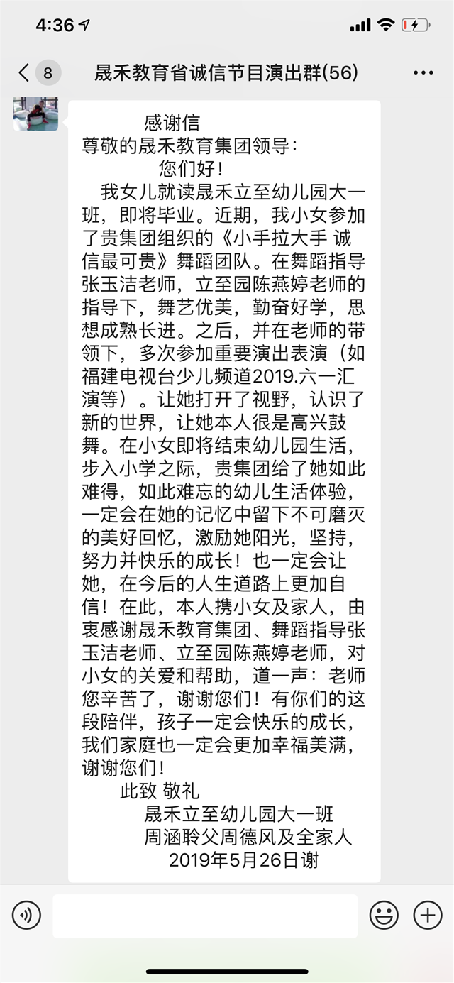 家長致晟禾教育的感謝信
