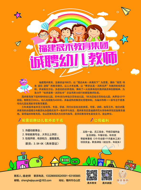 晟禾教育幼師招募中...