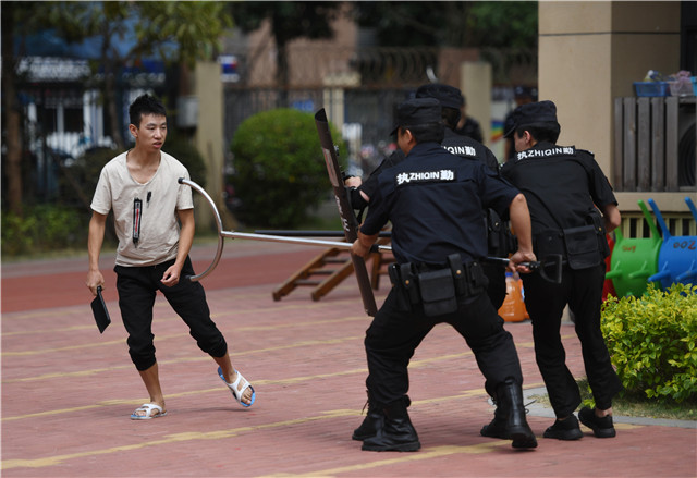 在聽(tīng)完警械展示后,幼兒園開(kāi)展了真實(shí)場(chǎng)景模擬:由工作人員假扮持刀行兇的歹徒闖入幼兒園,幼兒園的安保人員如何制服歹徒的小場(chǎng)景。在整個(gè)場(chǎng)景模擬過(guò)程中,大家反應(yīng)迅速、配合有序,在歹徒實(shí)施犯罪的第一時(shí)間將其制服,成功保衛(wèi)了校園安全。通過(guò)真實(shí)場(chǎng)景的模擬,讓大家更加真切地感受到了危險(xiǎn)離我們有時(shí)只在一瞬間,切實(shí)做好校園安全工作至關(guān)重要!