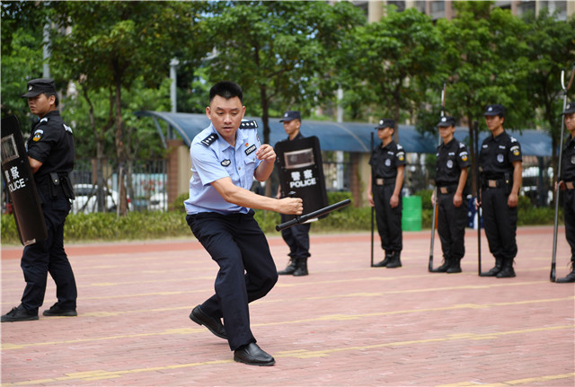 校園安全不能紙上談兵,真實(shí)的場(chǎng)景模擬才能讓大家更快速、有效地掌握校園保衛(wèi)工作的重點(diǎn)。隨后大家轉(zhuǎn)場(chǎng)室外,由上渡派出所的民警們向大家逐一演示校園安保的警用設(shè)備的正確使用方式。