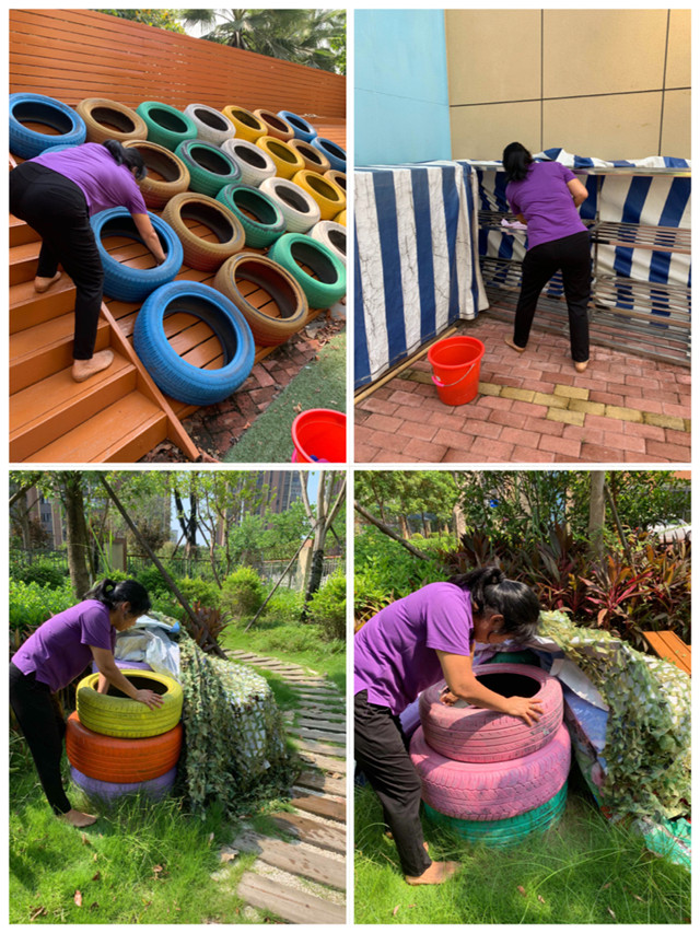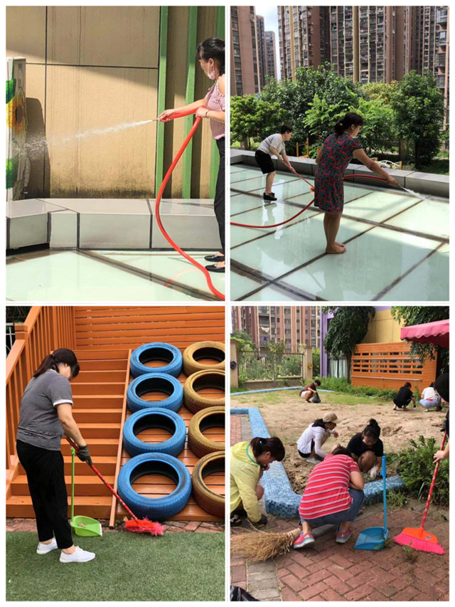八月中旬,幼兒園進(jìn)行了衛(wèi)生全面大掃除。認(rèn)真做好園內(nèi)外公共場所、室內(nèi)外環(huán)境的衛(wèi)生,清理衛(wèi)生死角,清除積水和雜物。