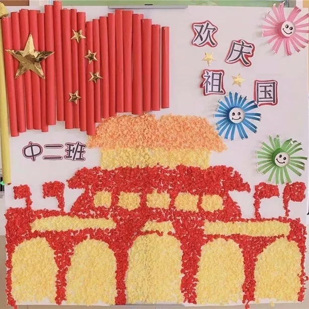 各班小朋友紛紛貢獻(xiàn)了自己的奇思妙想,用自己的巧手制作了獻(xiàn)給祖國(guó)媽媽的禮物,五星紅旗、天安門(mén)、生日蛋糕……精美的手工作品是最美的心意。