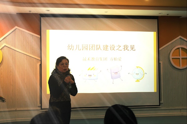 聽完各組的分享,晟禾教育總園長(zhǎng)方柏愛、專業(yè)部督導(dǎo)陳薇分別對(duì)各組的“頭腦風(fēng)暴”進(jìn)行了到位的梳理和精彩的點(diǎn)評(píng),并啟發(fā)大家要理清管理思路,以教職工為本,從孩子出發(fā)、潛下心來努力探索適宜本園特色的管理課程,并做深入的支持性研究。