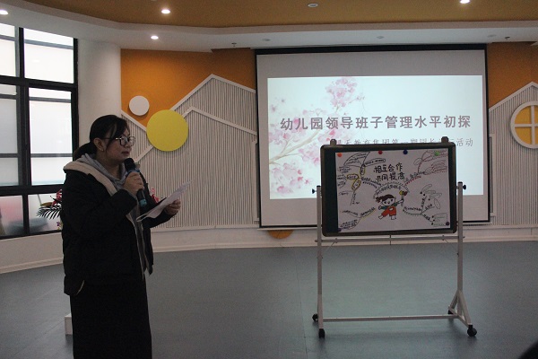 “頭腦風(fēng)暴”結(jié)束后,三組就《幼兒園團(tuán)隊(duì)管理》、《如何促進(jìn)教師專業(yè)成長(zhǎng)》、《如何做好保教結(jié)合》,分別選派本組人員給大家進(jìn)行分享。讓大家在思想碰撞中提升管理理念、拓寬管理思路、提高管理能力。