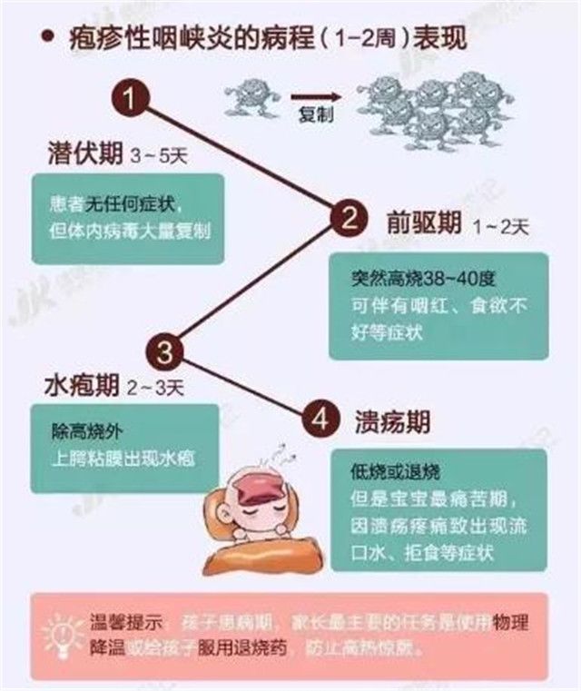 提示:患病期間,家長要隨時監(jiān)測孩子體溫,可使用物理降溫或服用退燒藥,防止高熱驚厥。