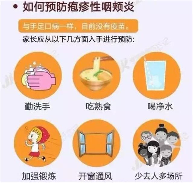 皰疹性咽峽炎的高發(fā)期,家長要做好預防工作,如果發(fā)現(xiàn)孩子發(fā)燒不退的同時口腔里起水皰,那就要及時到醫(yī)院進行治療。同時,督促孩子加強鍛煉,保持充足休息,以增強自身抵抗力。