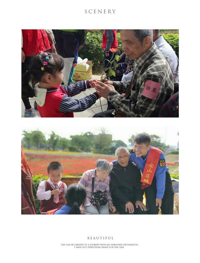 上午九點,“愛老護老 青春之光”活動準時在福州花海公園展開。逛花海,曬太陽,呼吸新鮮的空氣......從木頭棧道到風車長廊再走過花田小道,孩子們拉著老人的雙手細細地述說著秋天花海的美景,感受陣陣花香。