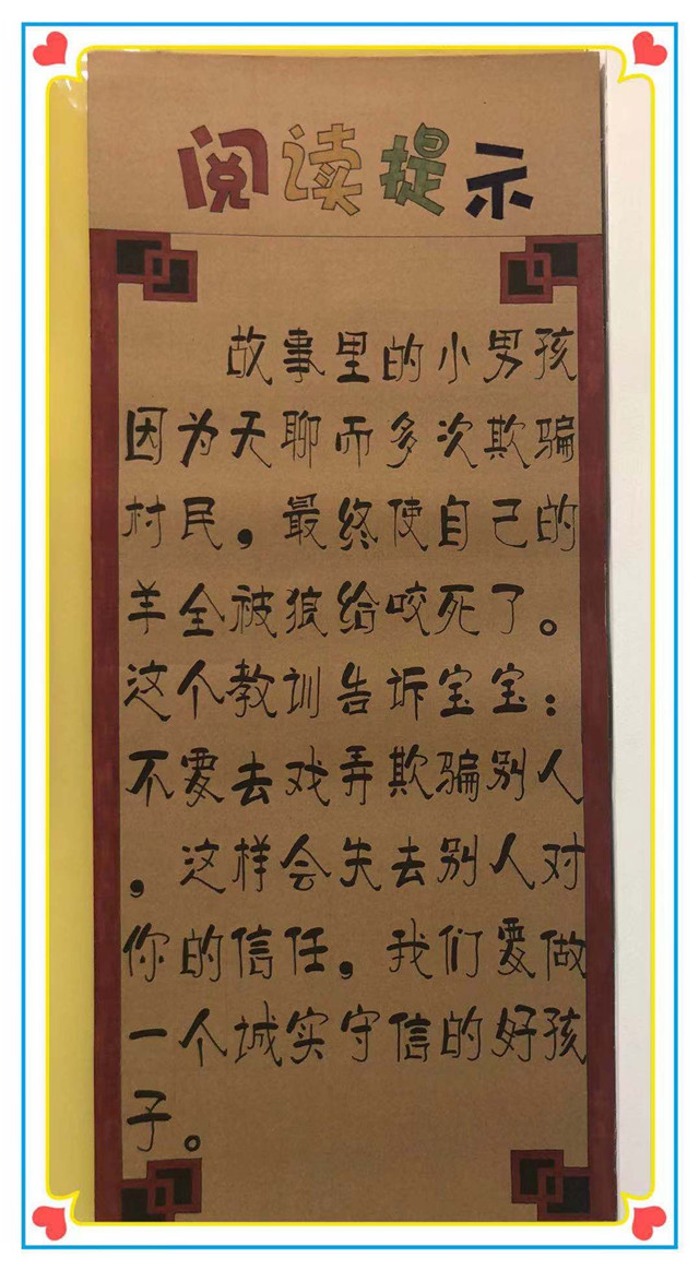 小班的老師們通過在日常生活中滲透生動有趣的故事,讓幼兒了解誠信的重要性,并教育幼兒在日常生活中如何做一個講誠信的好寶寶。