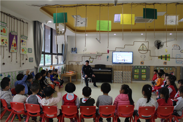 課堂上,小朋友們了解了交警叔叔的日常工作,也體會到了他們工作的忙碌與辛苦。交警叔叔根據他們的所見所聞,將交通安全知識帶進課堂,并就生活中小朋友們應該注意的交通安全問題,通過簡單易懂、生動趣味的形式為小朋友們進行了詳細講解。實景模擬“怎樣過馬路”、“與大人走散了怎么辦”、“怎樣撥打報警電話”等內容,讓小朋友們充分了解了遵守交通信號燈、交通標志的重要性。
