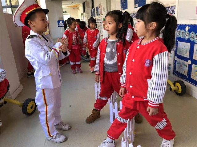 大班通過開展角色游戲——《交通警察》,親自動手準備生動有趣的交通道具,路面的交通設施、標志標線和交通信號......讓小朋友們在模擬交通警察工作的同時,了解怎樣預防道路交通事故及發(fā)生事故時要怎么辦。